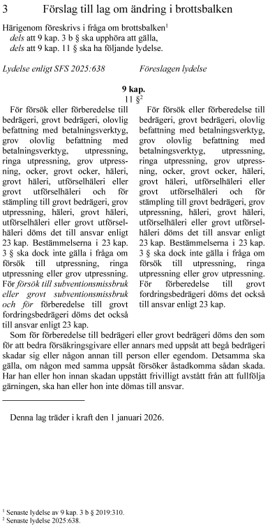 Lagändringarna föreslås träda i kraft den 1 januari 2026.