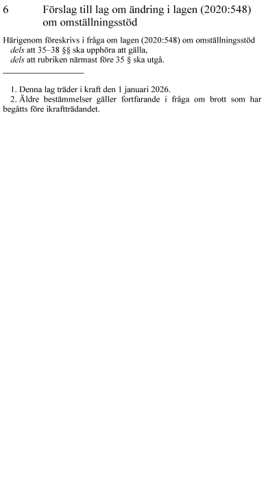6. lag om ändring i lagen (2020:548) om omställningsstöd.