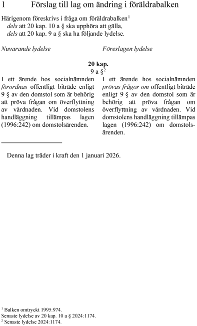 Lagändringarna föreslås träda i kraft den 1 januari 2026.