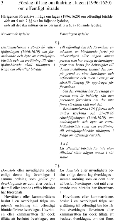 3. Riksdagen antar regeringens förslag till lag om ändring i lagen (1996:1620) om offentligt biträde.