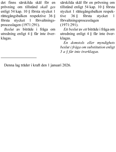 Mot denna bakgrund anser regeringen att det bör införas krav på tillstånd för substitution för offentliga biträden. Kravet på tillstånd till substitution gäller om inte annat är särskilt föreskrivet (1 § andra stycket lagen om offentligt biträde).