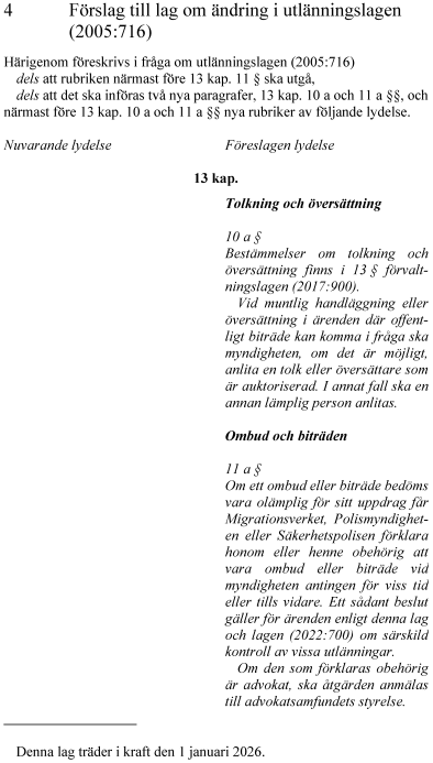 HD01JuU6: Skärpta krav för offentliga biträden och höjda kompetenskrav för tolkar i migrationsärenden