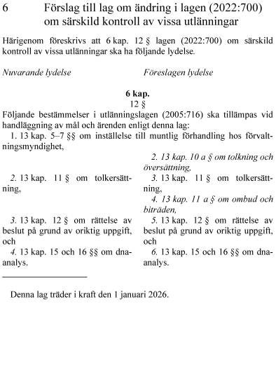 6. Riksdagen antar regeringens förslag till lag om ändring i lagen (2022:700) om särskild kontroll av vissa utlänningar.