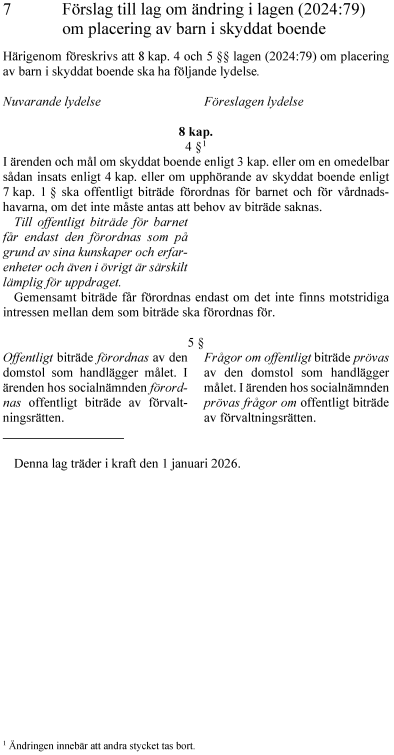 7. lag om ändring i lagen (2024:79) om placering av barn i skyddat boende.