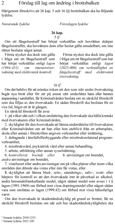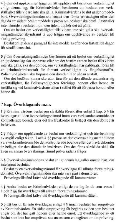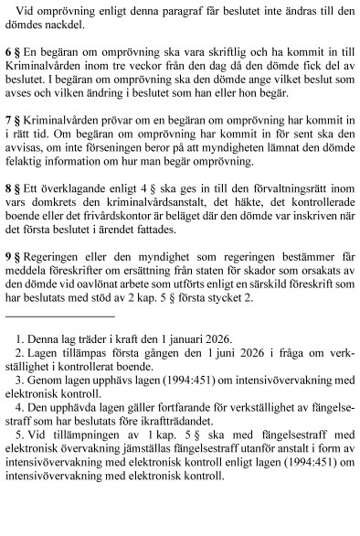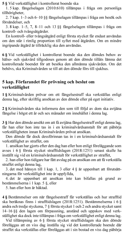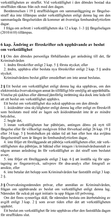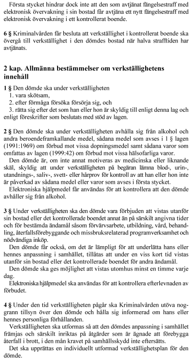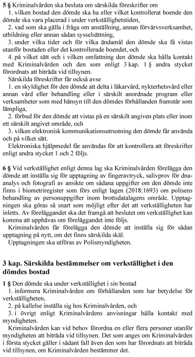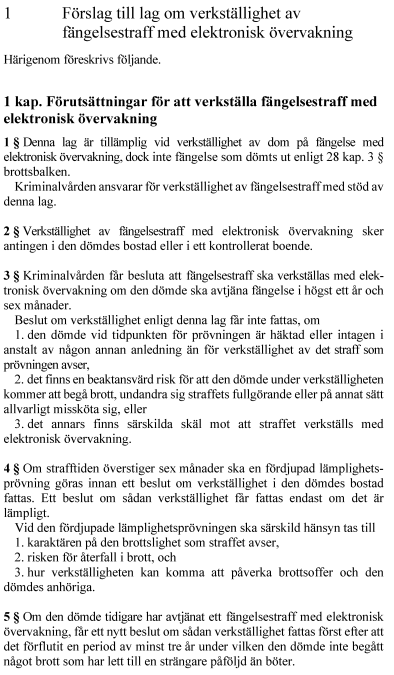 1. lag om verkställighet av fängelsestraff med elektronisk övervakning,