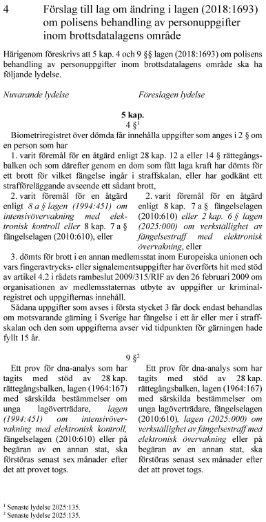 4. lag om ändring i lagen (2018:1693) om polisens behandling av personuppgifter inom brottsdatalagens område.