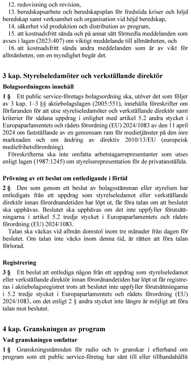 HD01KrU2: En lag om public service och riktlinjer för verksamheten 2026–2033