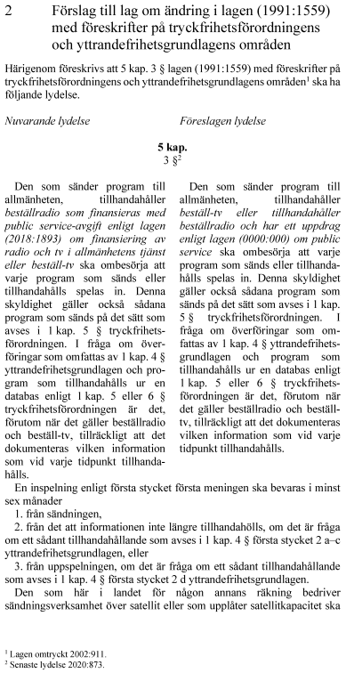2. lag om ändring i lagen (1991:1559) med föreskrifter på tryckfrihetsförordningens och yttrandefrihetsgrundlagens områden,