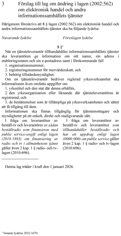 3. lag om ändring i lagen (2002:562) om elektronisk handel och andra informationssamhällets tjänster,