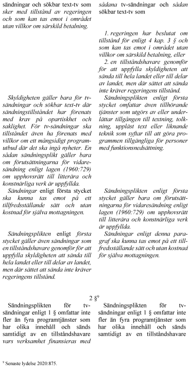 4. Riksdagen ställer sig bakom det som anförs i motionen om att villkor i nuvarande sändningstillstånd ska kvarstå och tillkännager detta för regeringen.