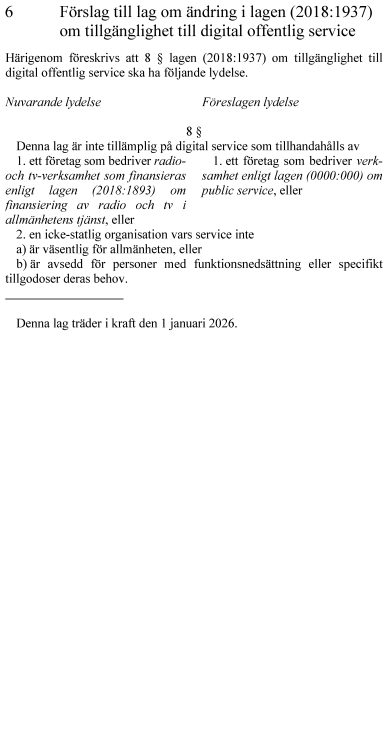 En lag om public service och riktlinjer för verksamheten 2026-2033