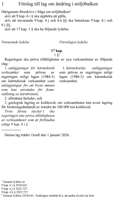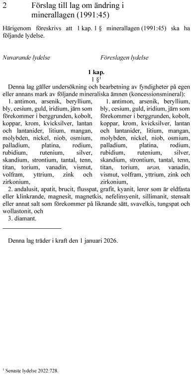 Proposition 2024/25:203 Förbudet mot utvinning av uran tas bort.