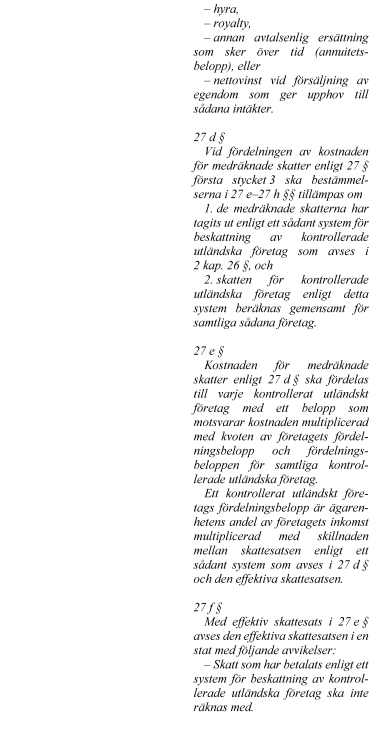 Regeringen gör bedömningen att det inte behöver införas ytterligare bestämmelser om beräkningen av belopp att fördela vad gäller skatt enligt sådana CFC-regler som innebär beskattning av inkomst som på global basis är lågbeskattad.
