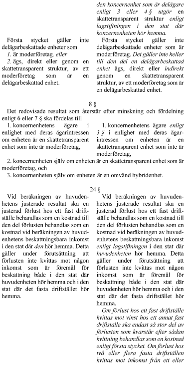 Fördelning av medräknade skatter – hybridenheter och omvända hybridenheter