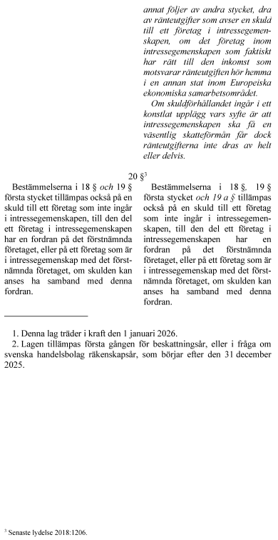 Av 24 kap. 18 § första stycket IL framgår bl.a. att ett företag som ingår i en intressegemenskap får dra av ränteutgifter för en skuld till ett företag i intressegemenskapen om det företag som faktiskt har rätt till den inkomst som motsvarar ränteutgiften hör hemma i en stat inom EES. Av 24 kap. 18 § andra stycket IL (undantagsregeln) framgår att om skuldförhållandet uteslutande eller så gott som uteslutande har uppkommit för att intressegemenskapen ska få en väsentlig skatteförmån får dock ränteutgifterna inte dras av.