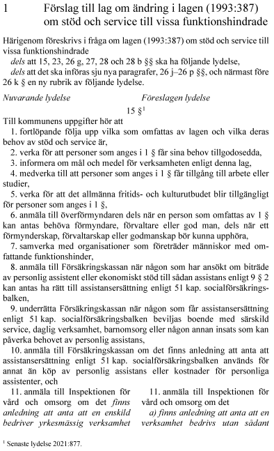 1. lag om ändring i lagen (1993:387) om stöd och service till vissa funktionshindrade,