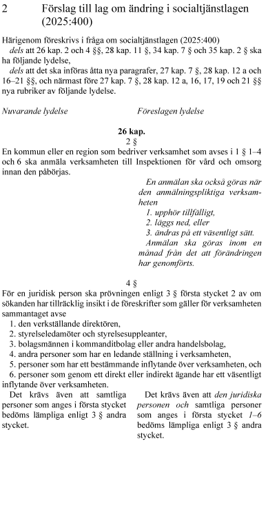 2. lag om ändring i socialtjänstlagen (2025:400).