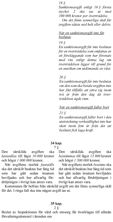 Regeringen föreslår att beloppsgränserna ska höjas för den särskilda avgift som gäller när en kommun inte verkställer gynnande beslut om insatser inom skälig tid. Detta gäller insatser både enligt SoL och enligt LSS.