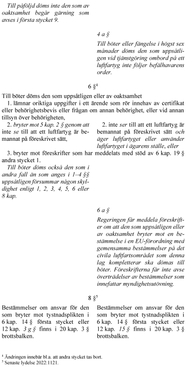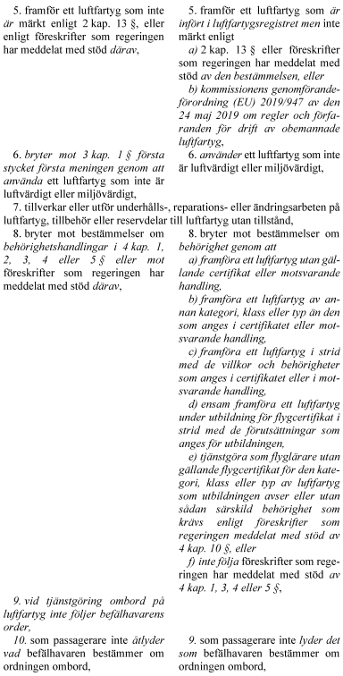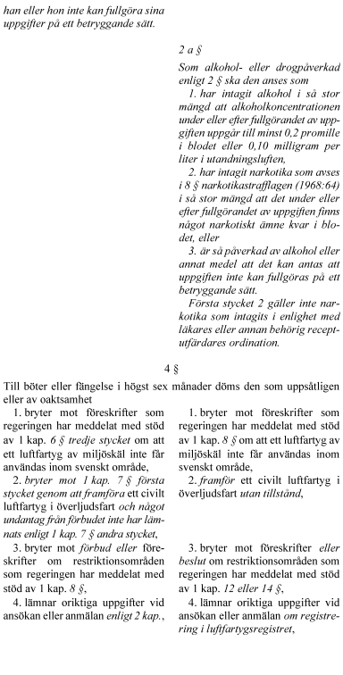 Sanktioner för vårdslöshet i flygtrafik och flygfylleri