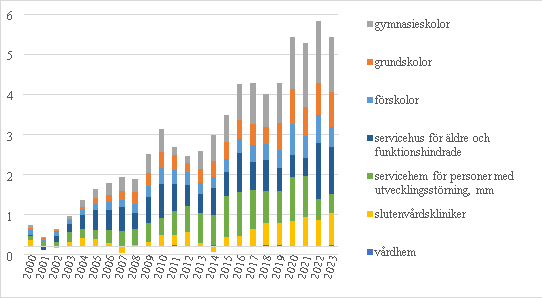 [86] Beräkningen baseras på SCB:s lönestrukturstatistik för 2024, genomsnittslöner för undersköterskor inom äldreomsorgen m.m. Lönekostnaderna har räknats upp med en faktor 1,5 för att inkludera arbetsgivaravgifter, avtalsförsäkringar och avtalspensioner.