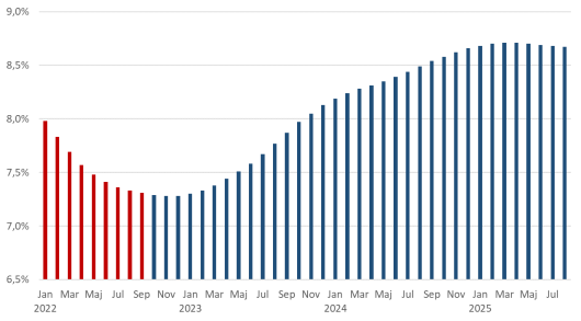 (Prognos för hushållens konsumtion år 2025, presenterade från 2022 - 2025)