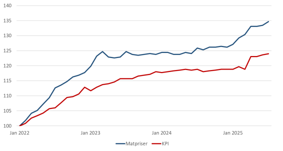 (Inflation - KPI och matpriser, Sverige 2022 – 2025)