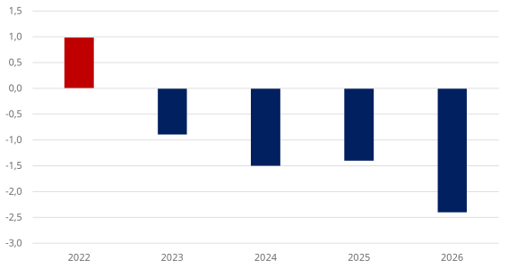 Men de senaste åren har finanspolitiken utvecklats på ett mycket oroande sätt. Underskotten har varit stora och notan för regeringens politik har skjutits på framtiden. Finansministern kommer enligt sina egna prognoser gå med underskott alla år den här mandatperioden. Även justerat för Ukrainastödet beräknas regeringen missa de finanspolitiska målen under alla sina år vid makten.